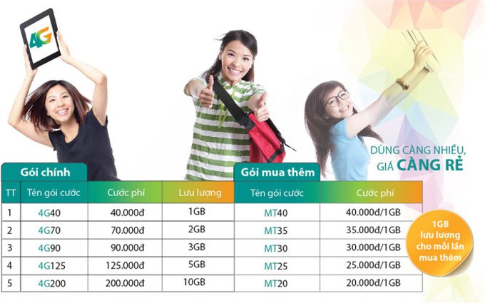 | Các gói cước chính của Viettel rẻ hơn 3G từ 40-60% |
